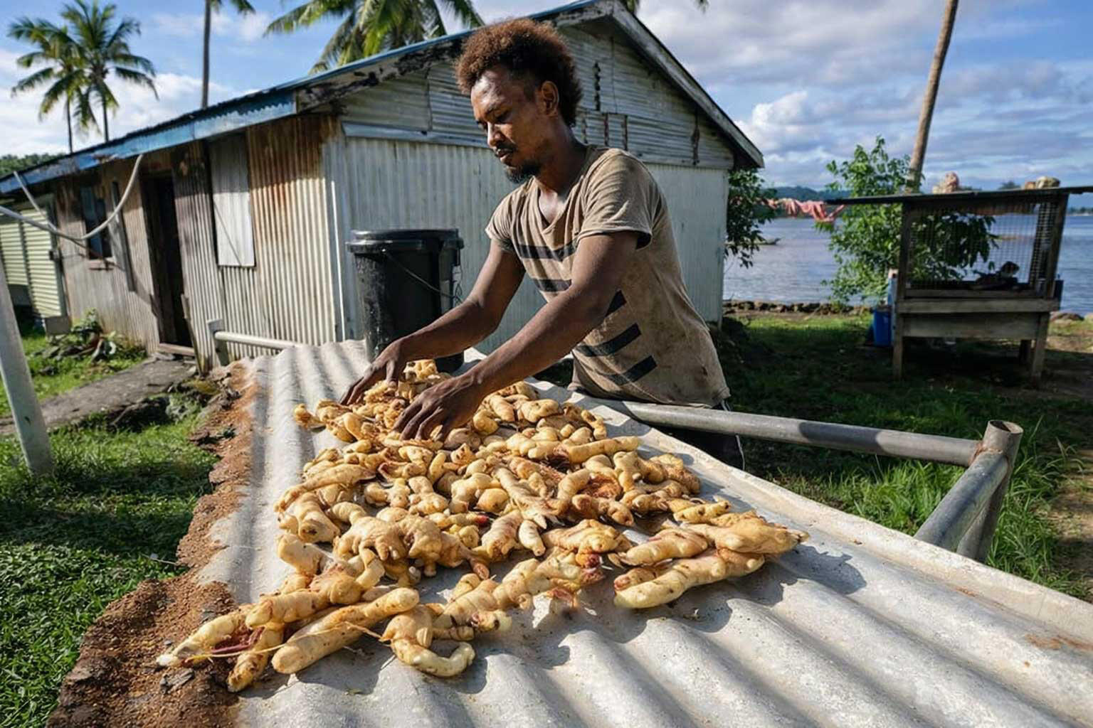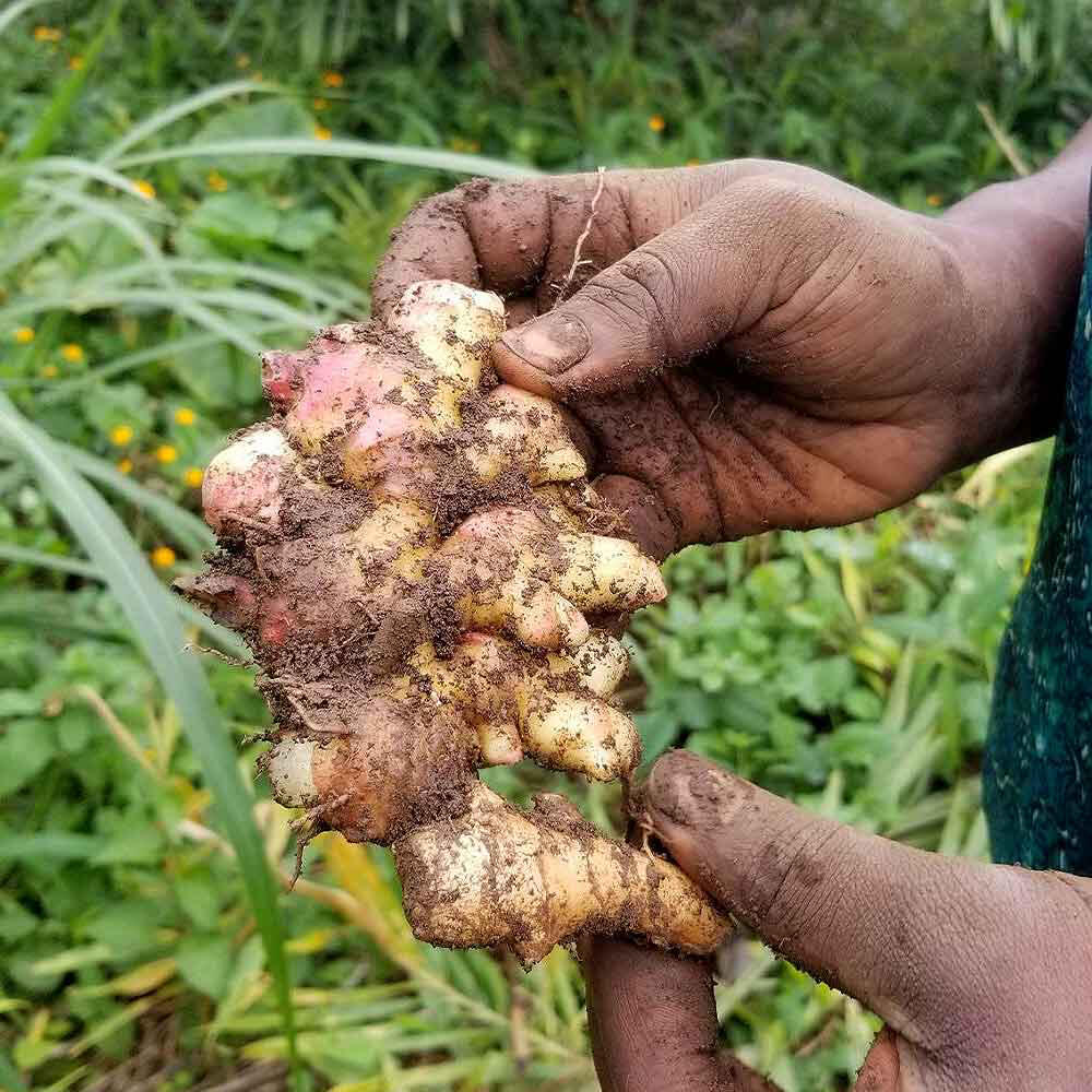 After harvest, ginger rhizomes are cleaned and prepared to preserve their natural quality before further processing.